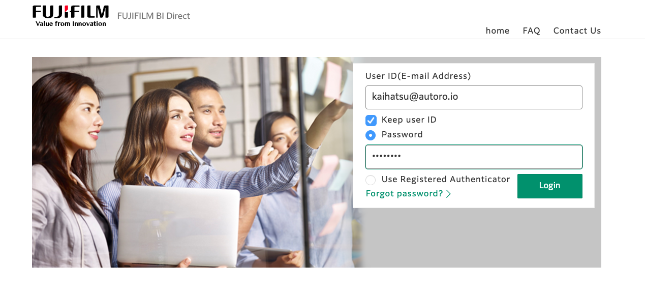 「FUJIFILM IWpro」をクリックすると、FUJIFILM IWproのログイン画面が表示されます。コネクションに利用するアカウントを選択しログインしてください。
